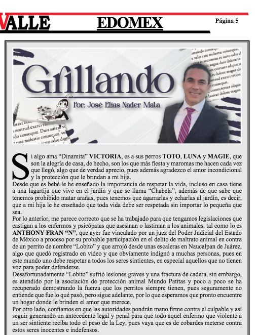 • https://www.eluniversaledomex.com.mx/valle-de-mexico/vinculan-a-proceso-a-anthony-fran-n-por-maltrato-animal-contra-lobito-en-tlalnepantla/