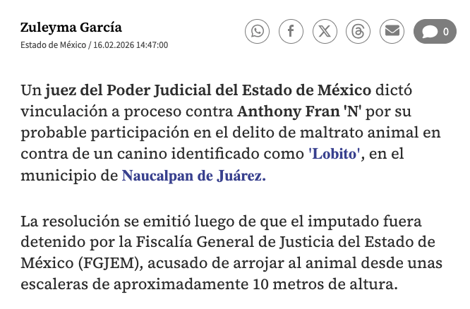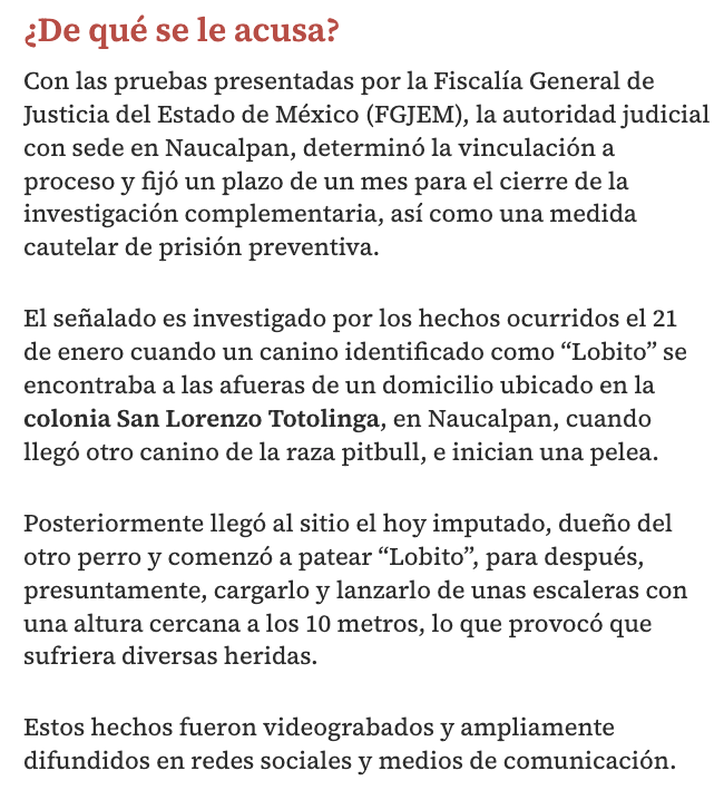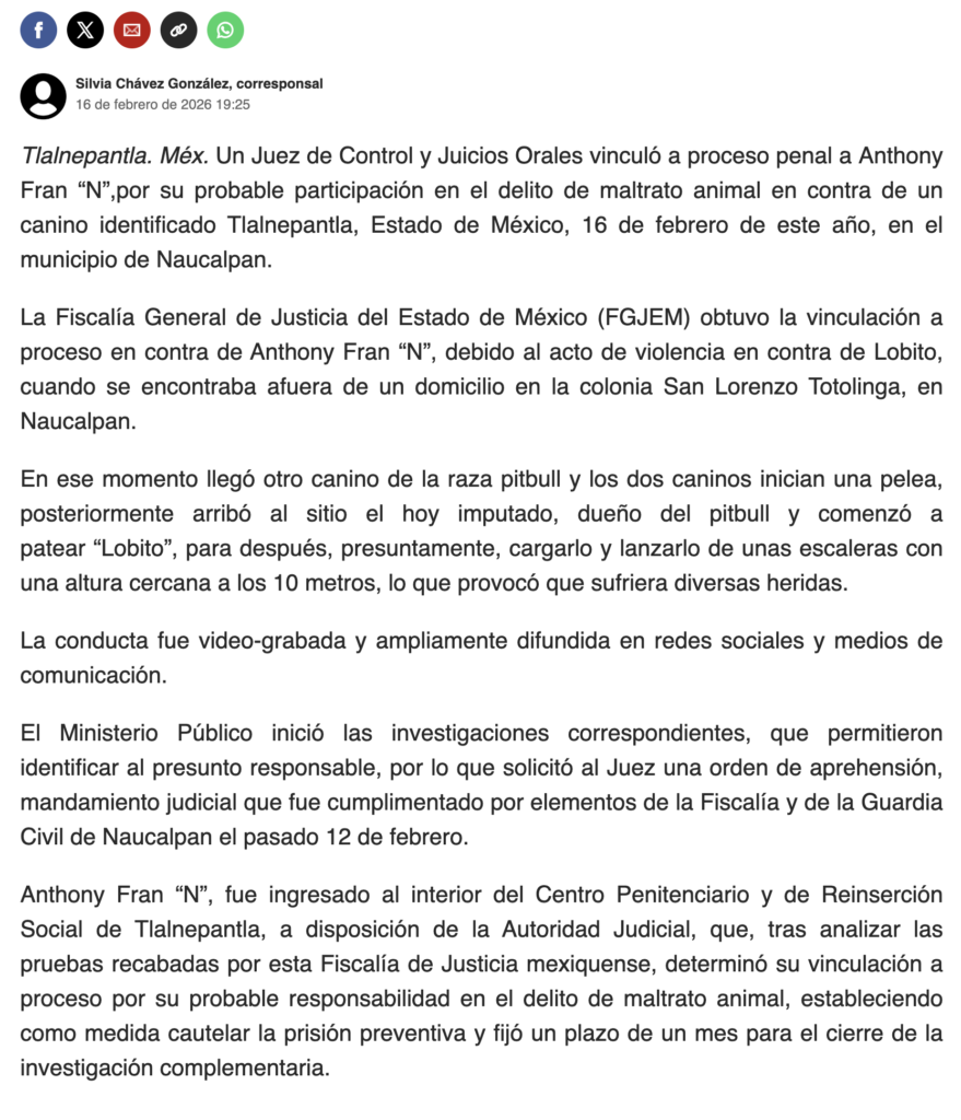 - https://www.jornada.com.mx/noticia/2026/02/16/estados/vinculan-a-proceso-a-hombre-por-maltrato-y-lanzamiento-de-perro-en-naucalpan