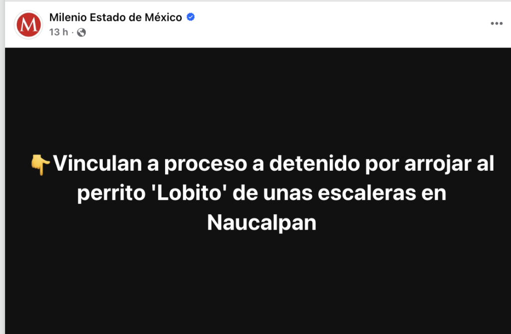 La resolución se emitió luego de que el imputado fuera detenido por la Fiscalía General de Justicia del Estado de México (FGJEM), acusado de arrojar al animal desde unas escaleras de aproximadamente 10 metros de altura.