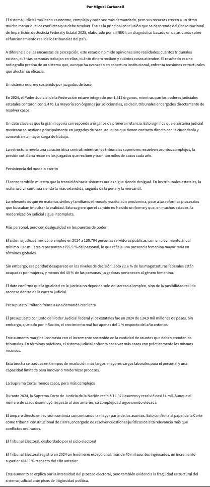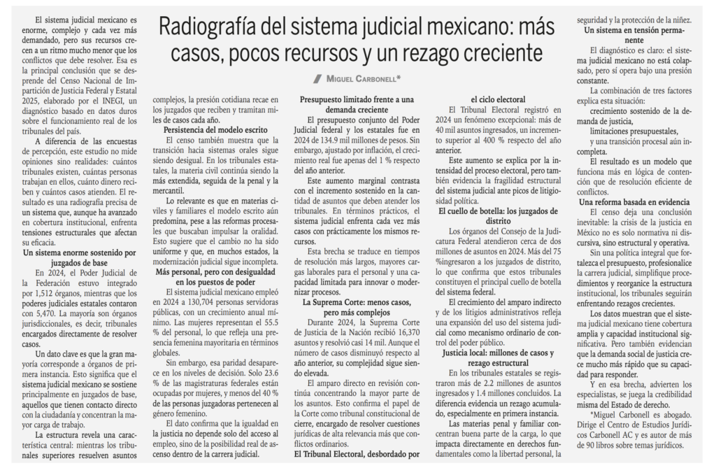 Radiografía del sistema judicial mexicano: más casos, pocos recursos y un rezago creciente – Miguel Carbonell