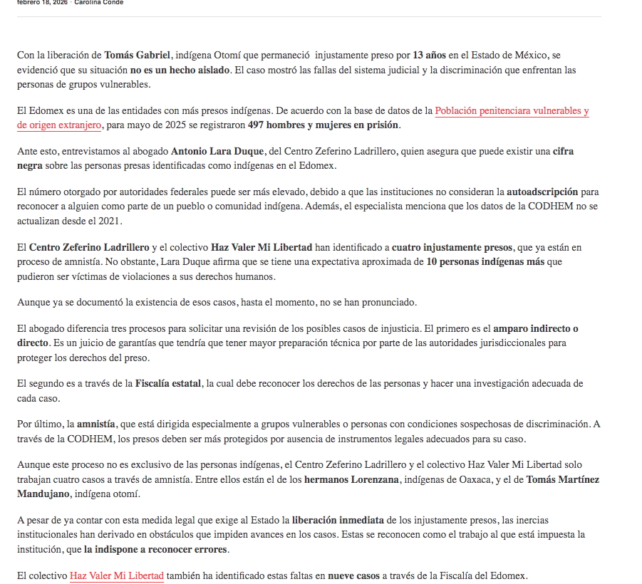 Ante esto, entrevistamos al abogado Antonio Lara Duque, del Centro Zeferino Ladrillero, quien asegura que puede existir una cifra negra sobre las personas presas identificadas como indígenas en el Edomex.