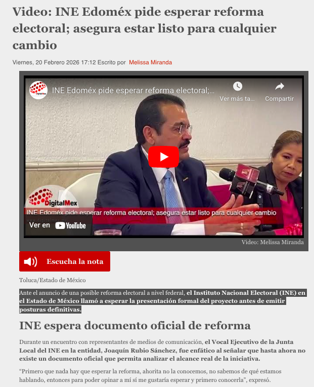 - https://digitalmex.mx/estado-de-mexico/story/65155/video-ine-edomex-pide-esperar-reforma-electoral-asegura-estar-listo-cualquier-cambio