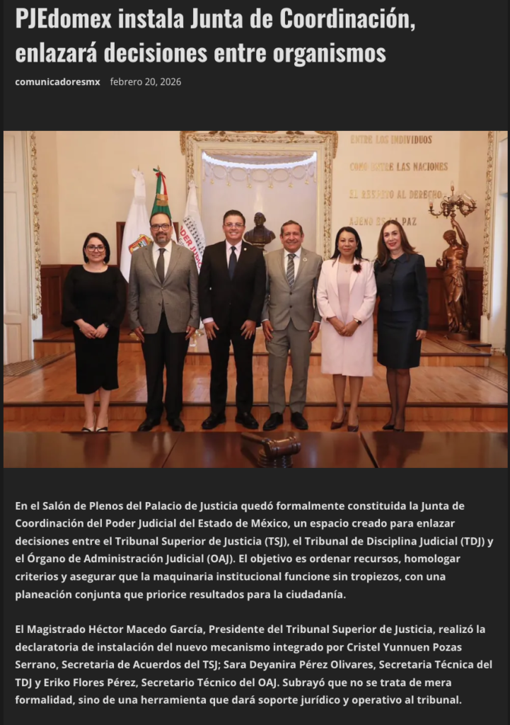 - https://comunicadores.mx/2026/02/20/pjedomex-instala-junta-de-coordinacion-enlazara-decisiones-entre-organismos/