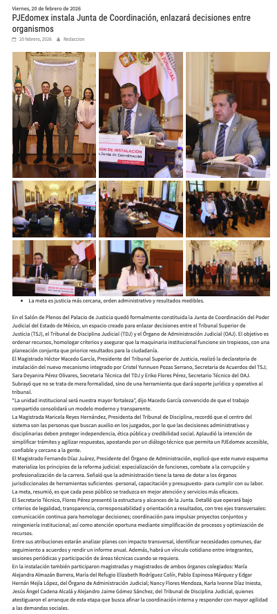 - https://seunonoticias.mx/2026/02/20/pjedomex-instala-junta-de-coordinacion-para-fortalecer-decisiones-institucionales/