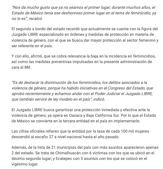- https://lajornadaestadodemexico.com/edomex-reduccion-de-feminicidio-rumbo-al-8m/