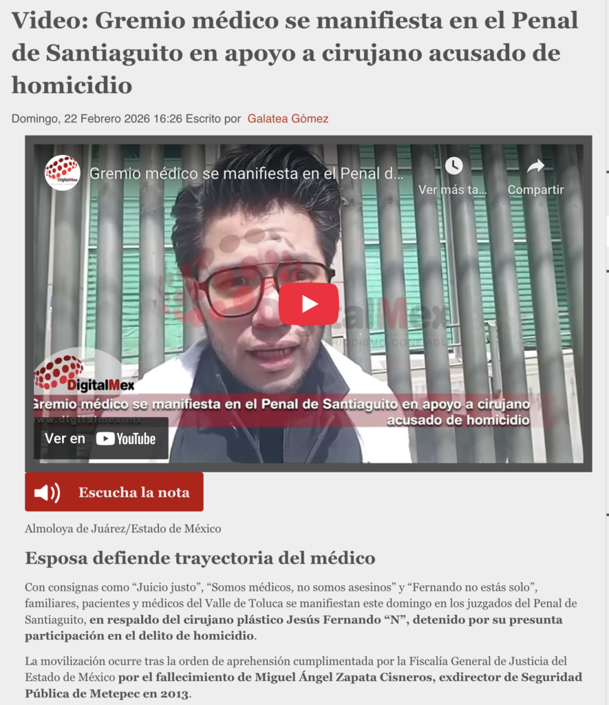 - https://digitalmex.mx/seguridad/story/65188/video-gremio-medico-se-manifiesta-en-el-penal-de-santiaguito-en-apoyo-a-cirujano-acusado-de-homicidio