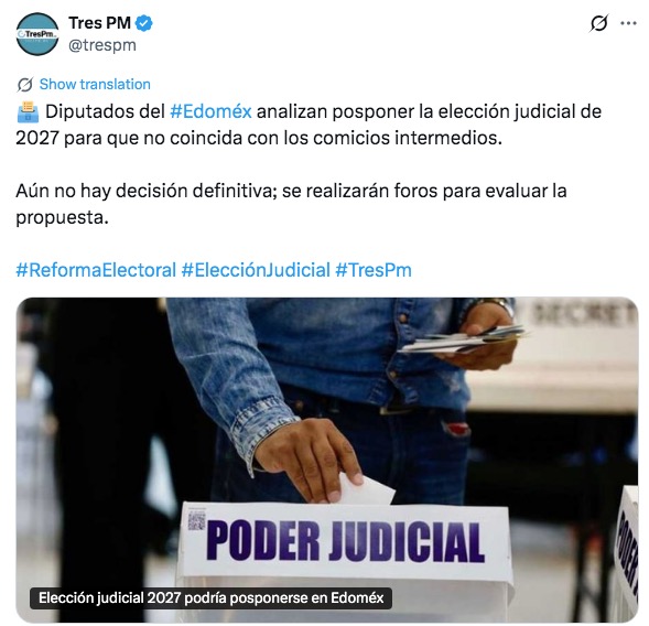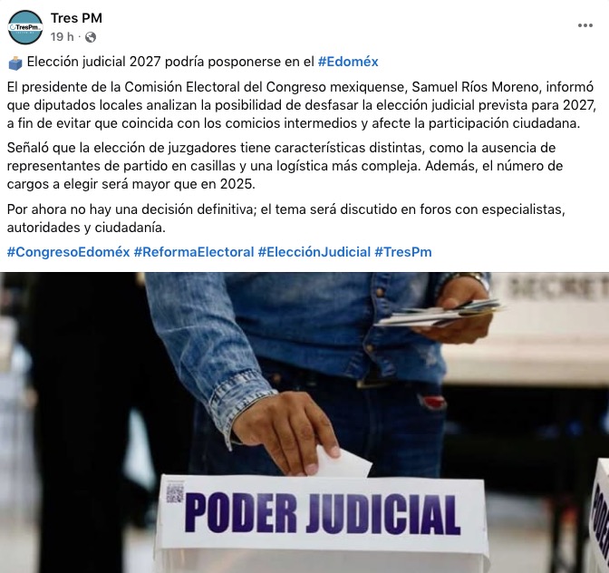 • https://www.trespm.mx/edomex/eleccion-judicial-2027-podria-posponerse-en-edomex