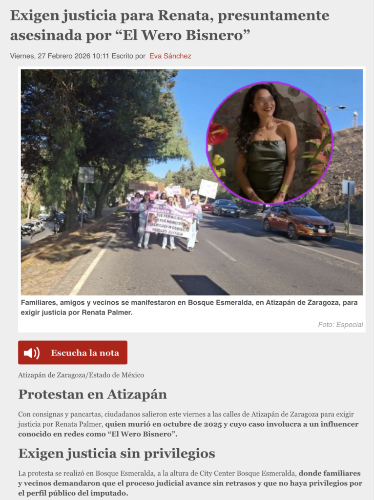 - https://www.digitalmex.mx/seguridad/story/65357/exigen-justicia-renata-presuntamente-asesinada-wero-bisnero