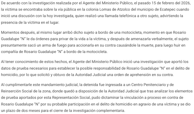 - https://reporterosenmovimiento.com/2026/02/26/vinculan-a-proceso-a-una-mujer-por-su-probable-participacion-en-el-delito-de-homicidio-registrado-en-el-municipio-de-ecatepec/