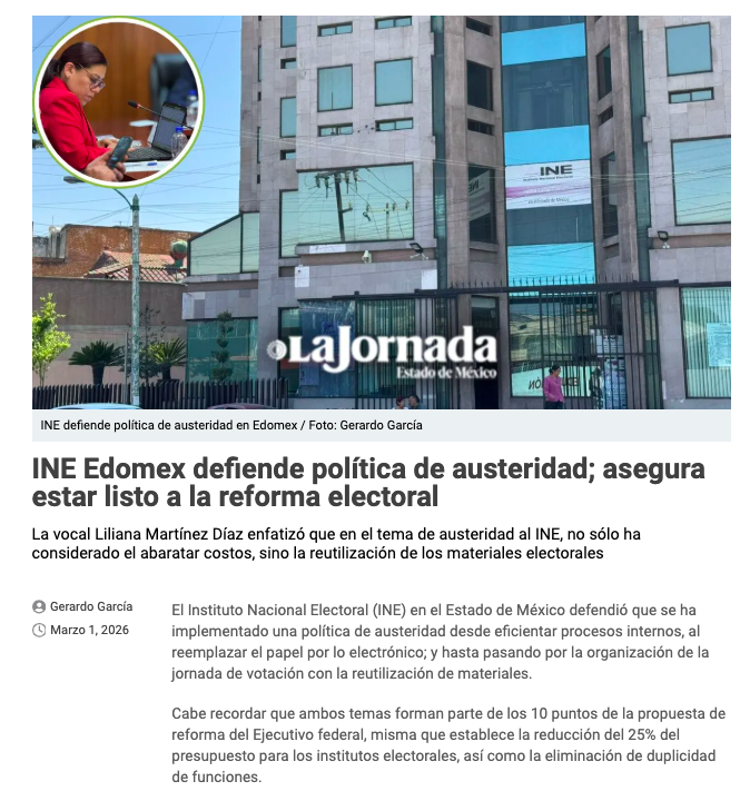 - https://lajornadaestadodemexico.com/ine-edomex-defiende-politica-de-austeridad-y-adelanta-estar-listo-a-la-reforma/