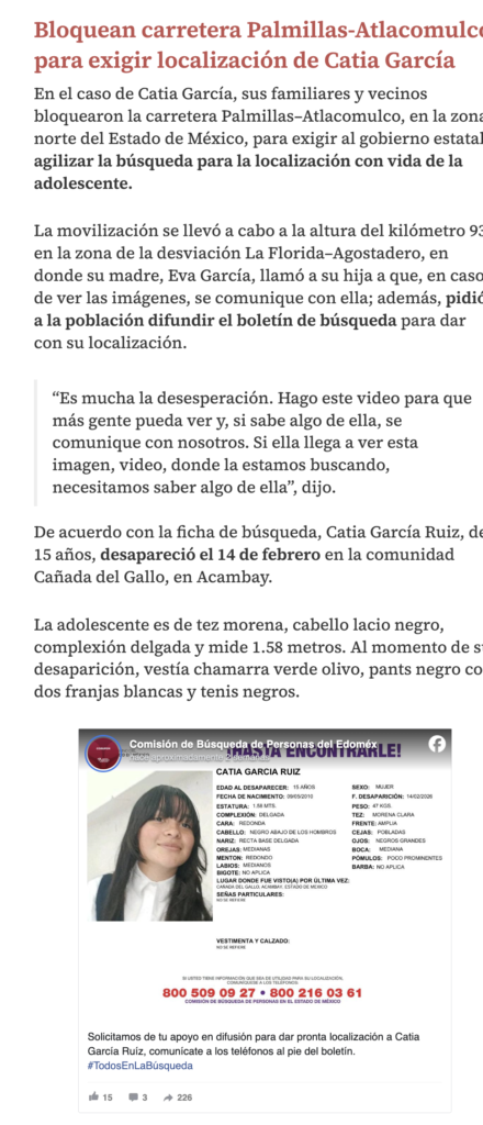 - https://poderedomex.com/protestan-en-la-palmillas-atlacomulco-por-la-desaparicion-de-catia-garcia-cruz/