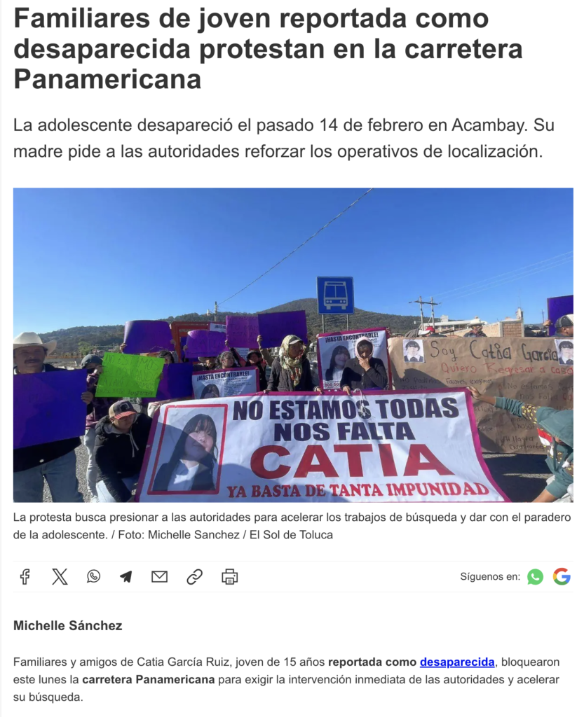 - https://oem.com.mx/elsoldetoluca/local/familiares-de-joven-reportada-como-desaparecida-protestan-en-la-carretera-panamericana-28742559