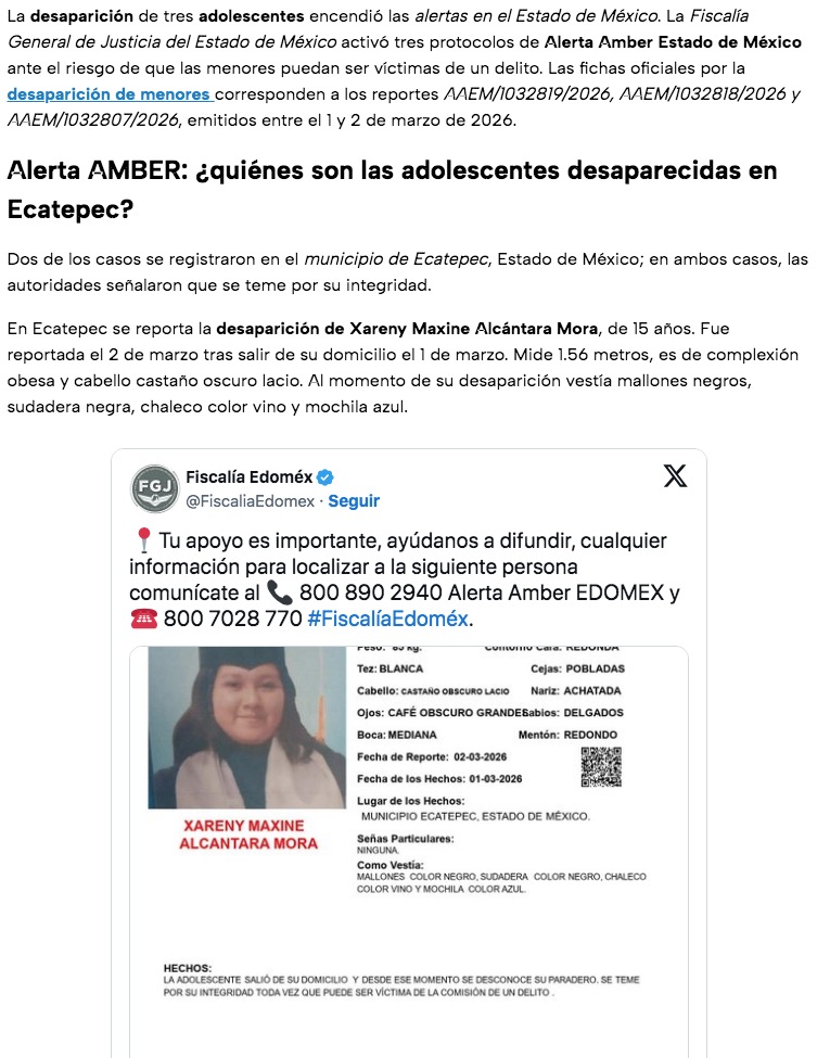 • https://www.tvazteca.com/aztecanoticias/alerta-amaber-edomex-buscan-adolescentes-desaparecidas-ecatepec-y-toluca/