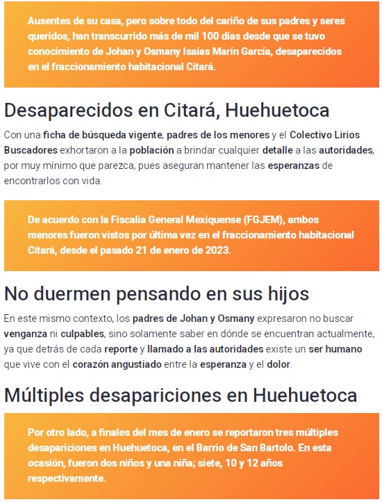 El amor hacia los hijos no tiene límite y así lo han demostrado padres de familia a través del Colectivo Lirios Buscadores, quienes mantienen la esperanza de encontrar con vida a sus dos hijos/hermanos de 9 y 15 años, desaparecidos en Huehuetoca, desde hace 3 años.