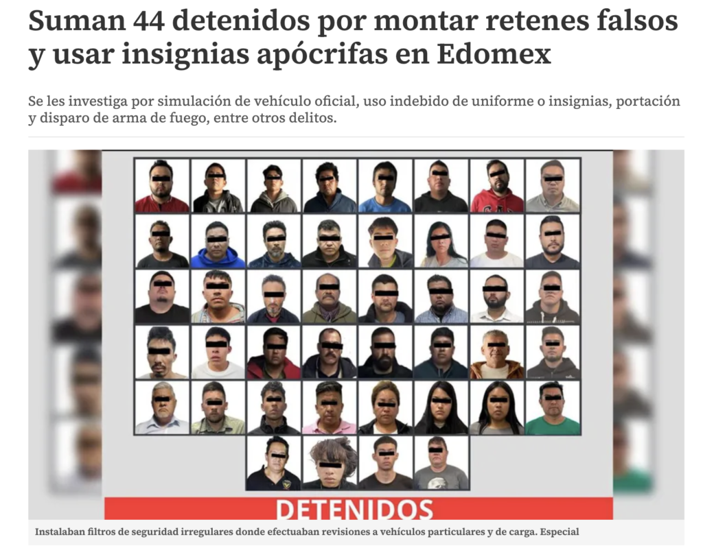 - https://www.milenio.com/policia/caen-44-por-montar-retenes-falsos-y-usar-insignias-apocrifas-edomex