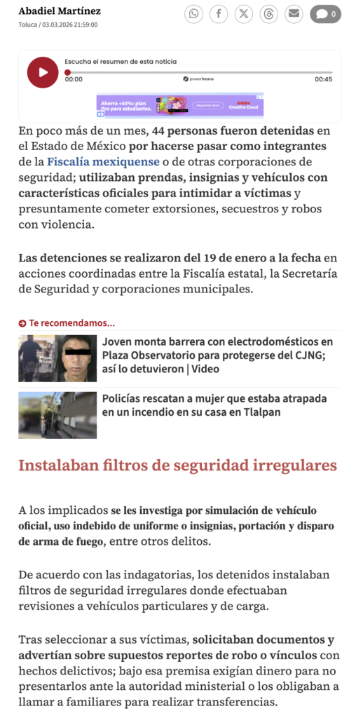 - https://www.jornada.com.mx/noticia/2026/03/03/estados/fiscalia-mexiquense-detiene-a-44-falsos-policias-que-instalaban-retenes-ilegales