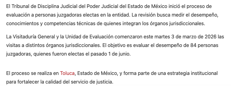 - https://oem.com.mx/elsoldetoluca/local/inicia-evaluacion-a-personas-juzgadoras-en-el-estado-de-mexico-28764979