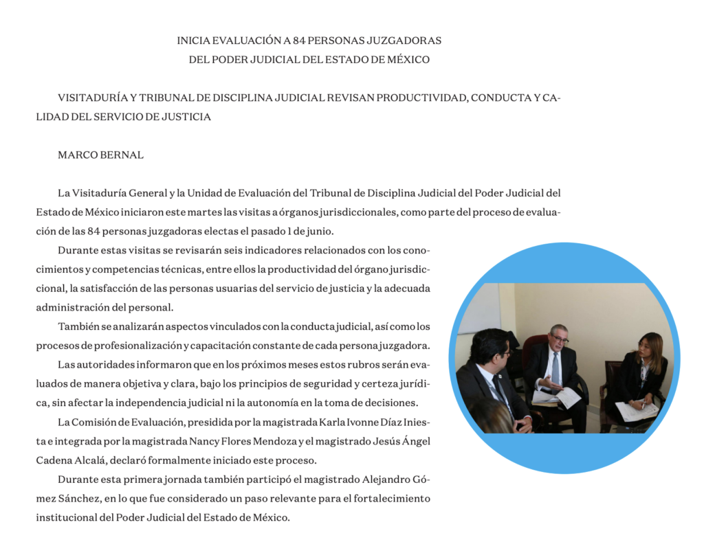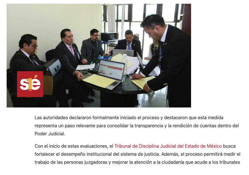 - https://www.lanoticiaes.com/post/tribunal-de-disciplina-judicial-inici%C3%B3-evaluaci%C3%B3n-de-personas-juzgadoras-en-edomex