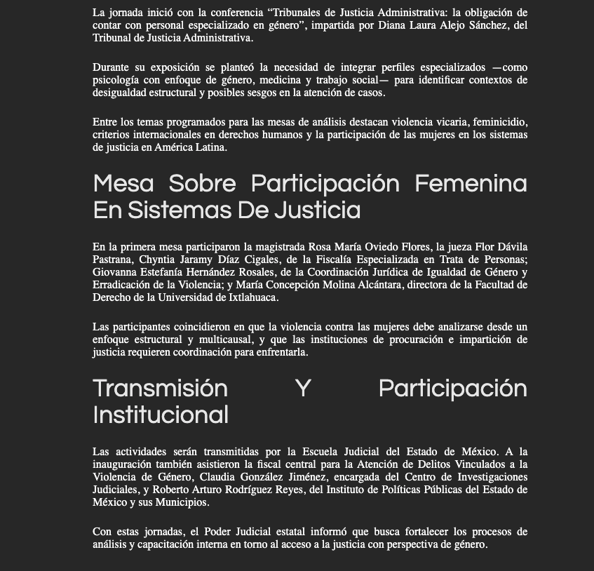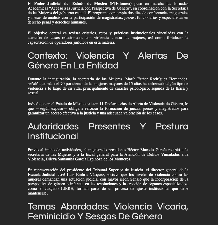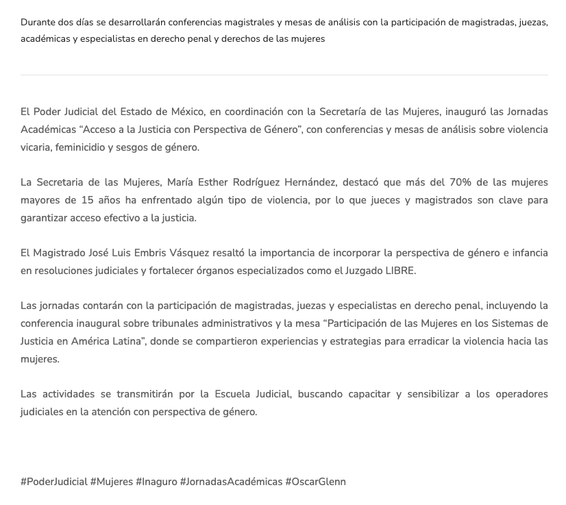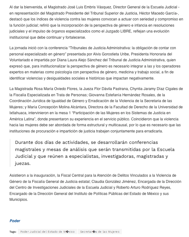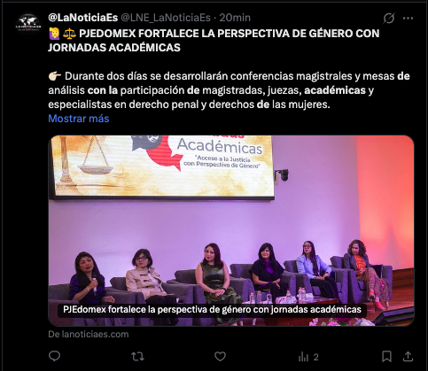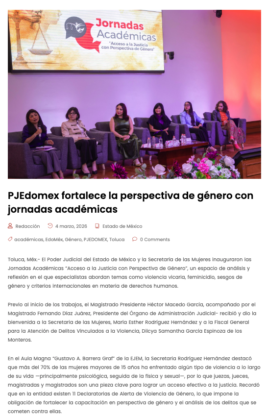 • https://www.lanoticiaes.com/post/pjedomex-fortalece-la-perspectiva-de-g%C3%A9nero-con-jornadas-acad%C3%A9micas