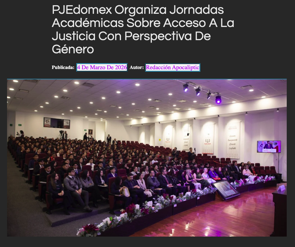 • https://apocaliptic.com/estado-de-mexico/2026/03/04/pjedomex-organiza-jornadas-academicas-sobre-acceso-a-la-justicia-con-perspectiva-de-genero/