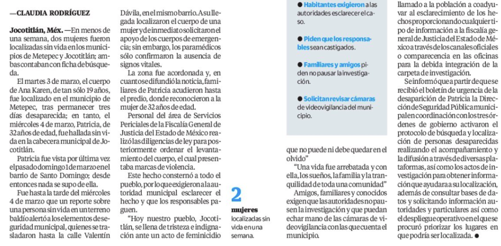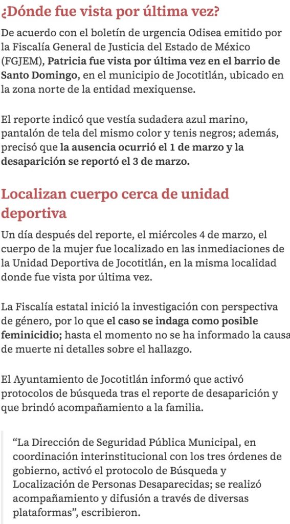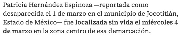 - https://www.milenio.com/policia/localizan-sin-vida-patricia-desaparecida-jocotitlan-edomex