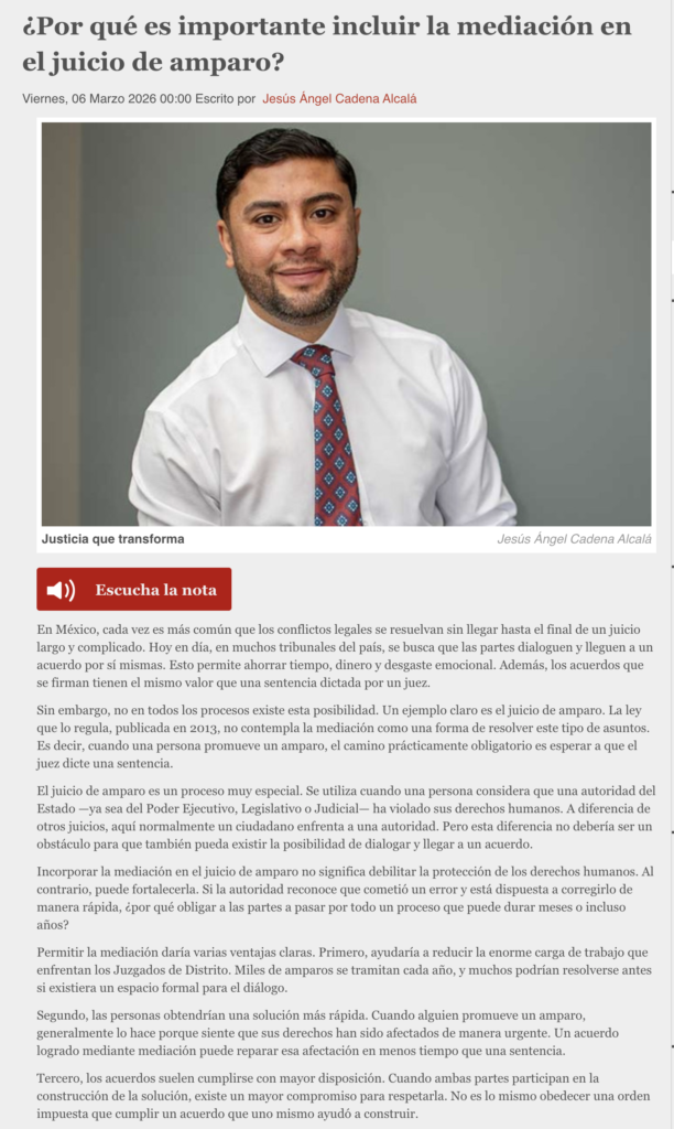¿Por qué es importante incluir la mediación en el juicio de amparo? – Jesús Ángel Cadena Alcalá