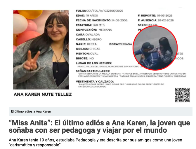 - https://lajornadaestadodemexico.com/miss-anita-el-ultimo-adios-a-ana-karen-la-joven-que-sonaba-con-ser-pedagoga-y-viajar-por-el-mundo/