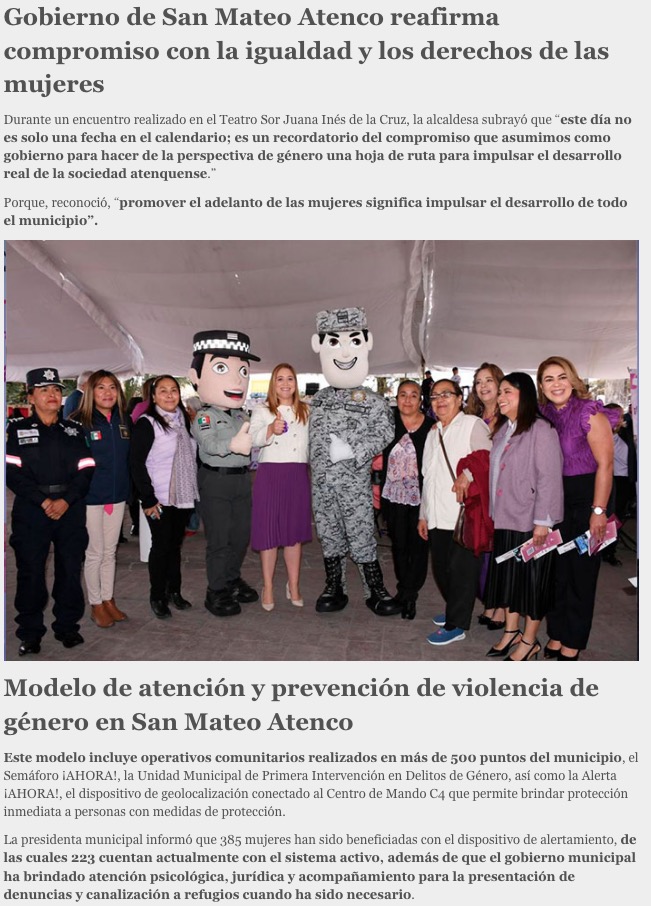 • https://www.digitalmex.mx/municipios/story/65558/san-mateo-atenco-refuerza-acciones-igualdad-reduce-violencia-genero