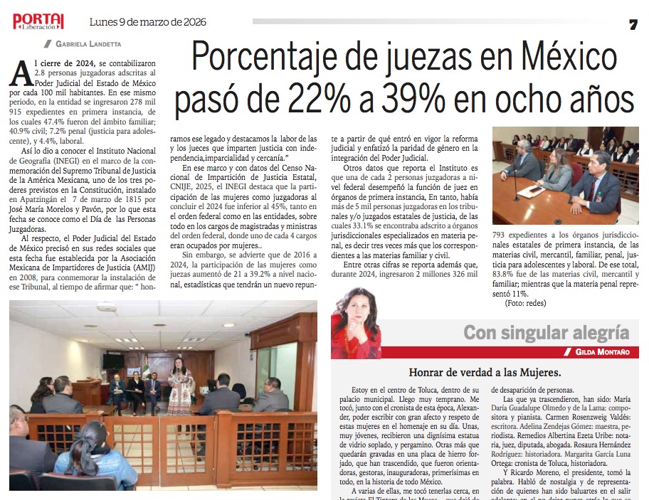 - https://diarioportal.com/sociedad/porcentaje-de-juezas-en-mexico-paso-de-22-a-39-en-ocho-anos