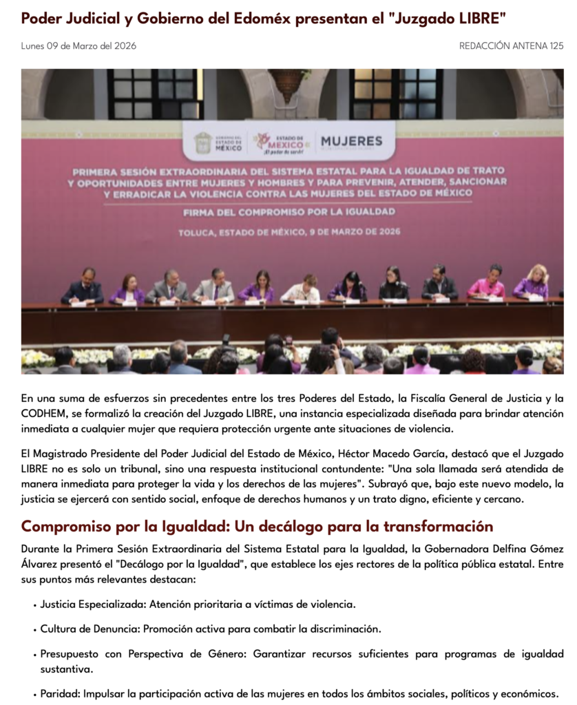 - https://antena125.com/noticias/poder-judicial-y-gobierno-del-edomex-presentan-el-juzgado-libre
