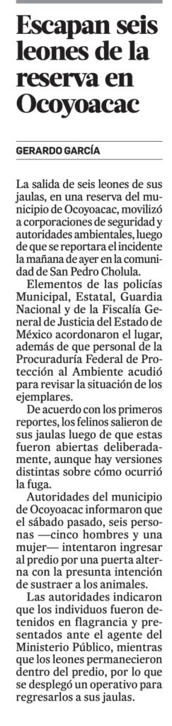 - https://lajornadaestadodemexico.com/eran-seis-los-leones-que-salieron-de-su-jaula-en-ocoyoacac/