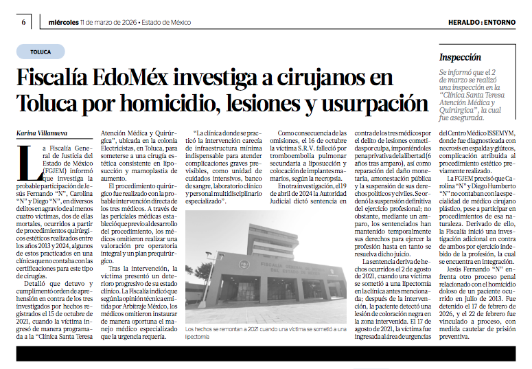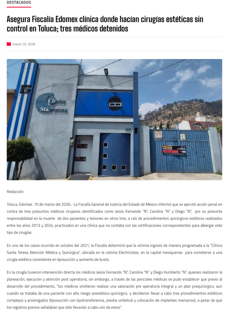 - https://lasillarota.com/metropoli/2026/3/11/detienen-tres-medicos-en-el-edomex-por-muertes-negligencia-en-cirugias-esteticas-589808.html
