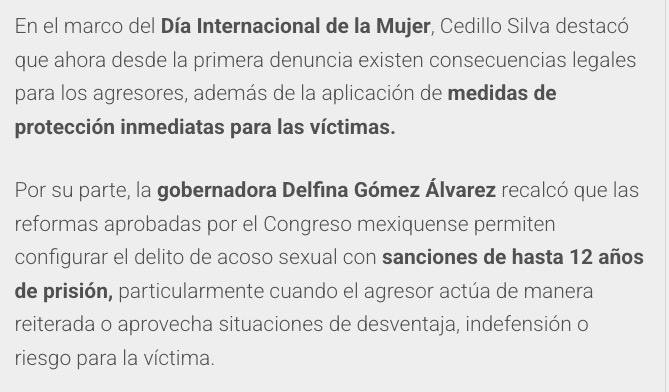 • https://www.trespm.mx/edomex/hasta-12-anos-de-carcel-por-acoso-sexual-en-edomex
