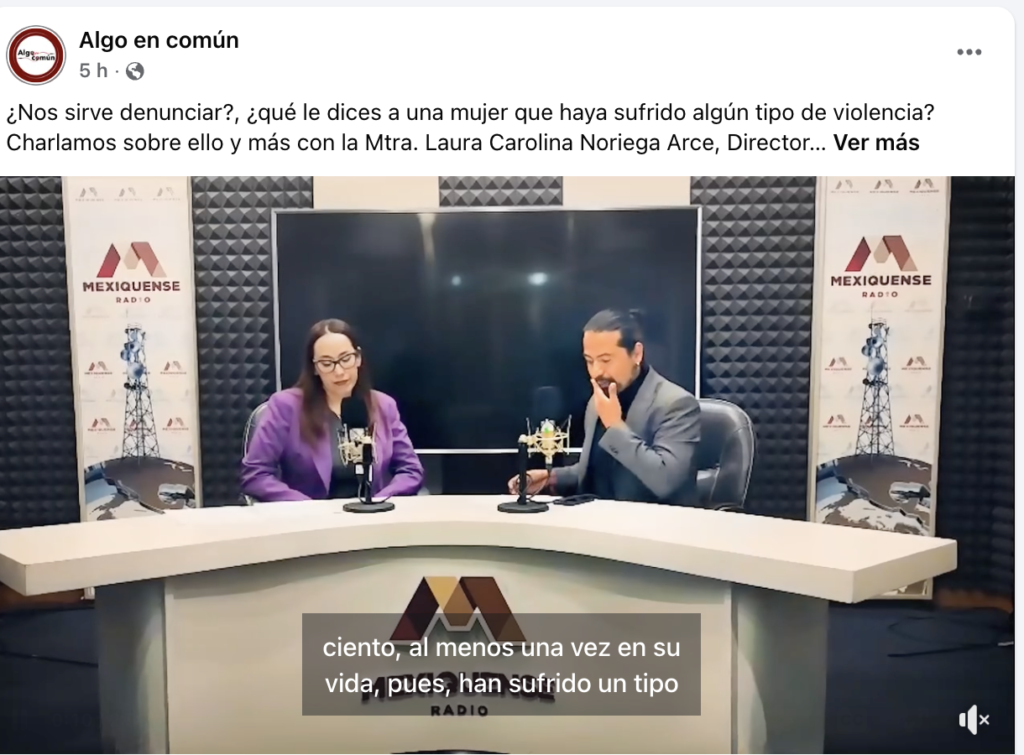 Durante la entrevista, Laura Carolina Noriega Arce explicó la importancia de denunciar los casos de violencia contra las mujeres para activar los mecanismos institucionales de protección y justicia. Señaló que el aumento de denuncias no significa necesariamente más violencia, sino mayor confianza en las instituciones y mayor conciencia social.