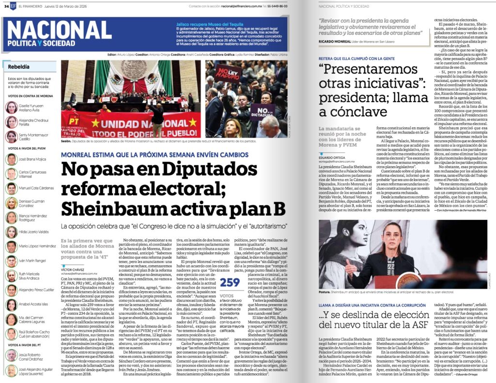 Por vez primera desde la llegada de la alianza Morena-PT-PVEM a la Presidencia de la República, los aliados del partido guinda rechazaron una propuesta de enmienda constitucional, al concretar su negativa a la reforma electoral de la presidenta Claudia Sheinbaum. Pese a ello, los morenistas adelantaron que este es un “desacuerdo momentáneo” y que en breve comenzarán a construir el llamado “Plan B”.