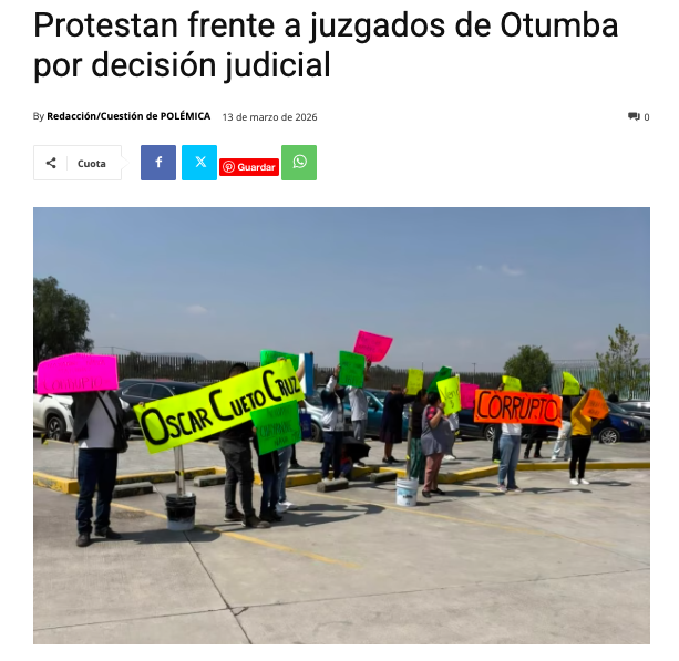 - https://www.cuestiondepolemica.com/protestan-frente-a-juzgados-de-otumba-por-decision-judicial/