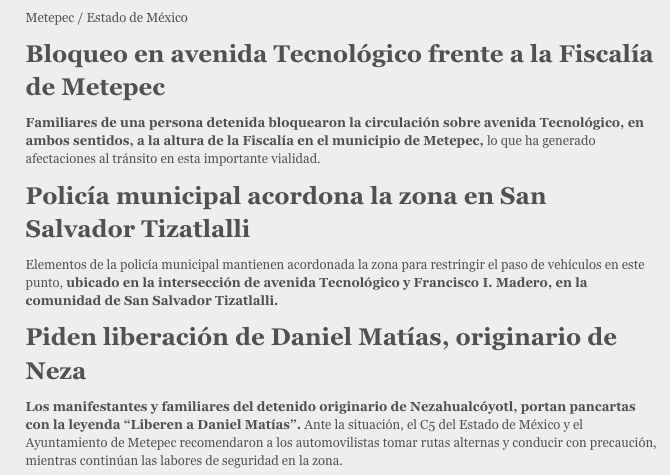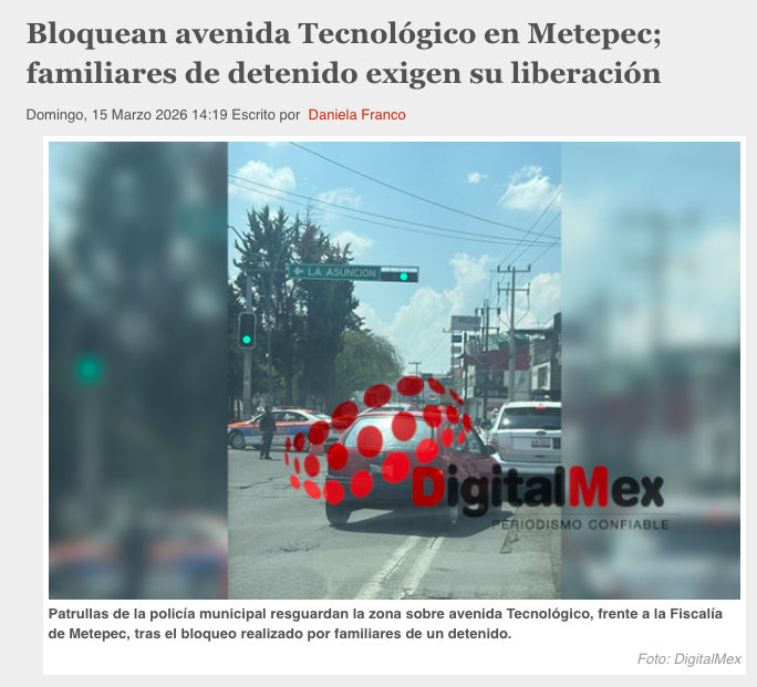 • https://digitalmex.mx/seguridad/story/65776/bloquean-avenida-tecnologico-metepec-familiares-detenido-exigen-liberacion