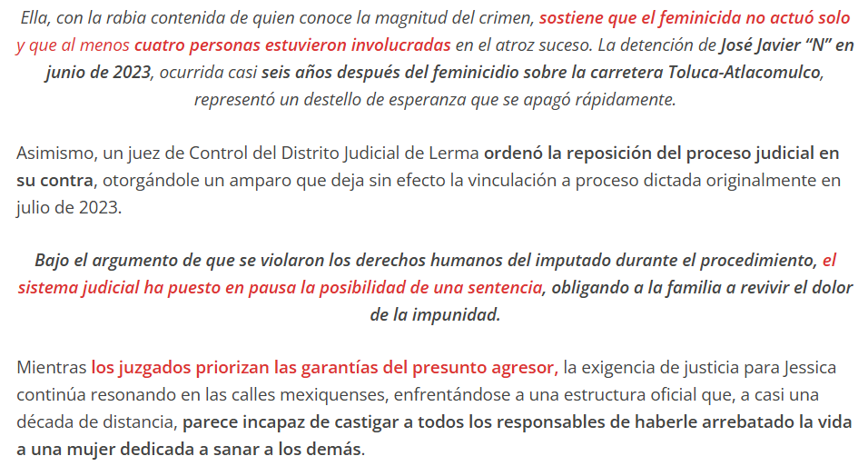 • https://www.diarioevolucion.com.mx/madre-de-jessica-acusa-que-juzgados-priorizan-las-garantias-del-feminicida-y-no-velan-por-la-justicia/