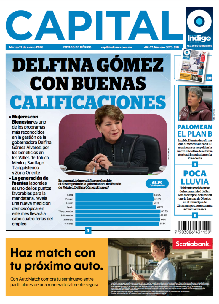 De acuerdo con una encuesta realizada por FactoMétrica, Delfina Gómez Álvarez tuvo el 65.1 por ciento de opinión positiva por su desempeño como gobernadora del Estado de México, por lo que conserva una alta aprobación en la entidad. La encuesta, que se realizó a personas mayores de 18 años del Estado de México, arrojó que la gobernadora Delfina Gómez tuvo el 52.2 por ciento por el trabajo que realiza en el combate a la inseguridad.