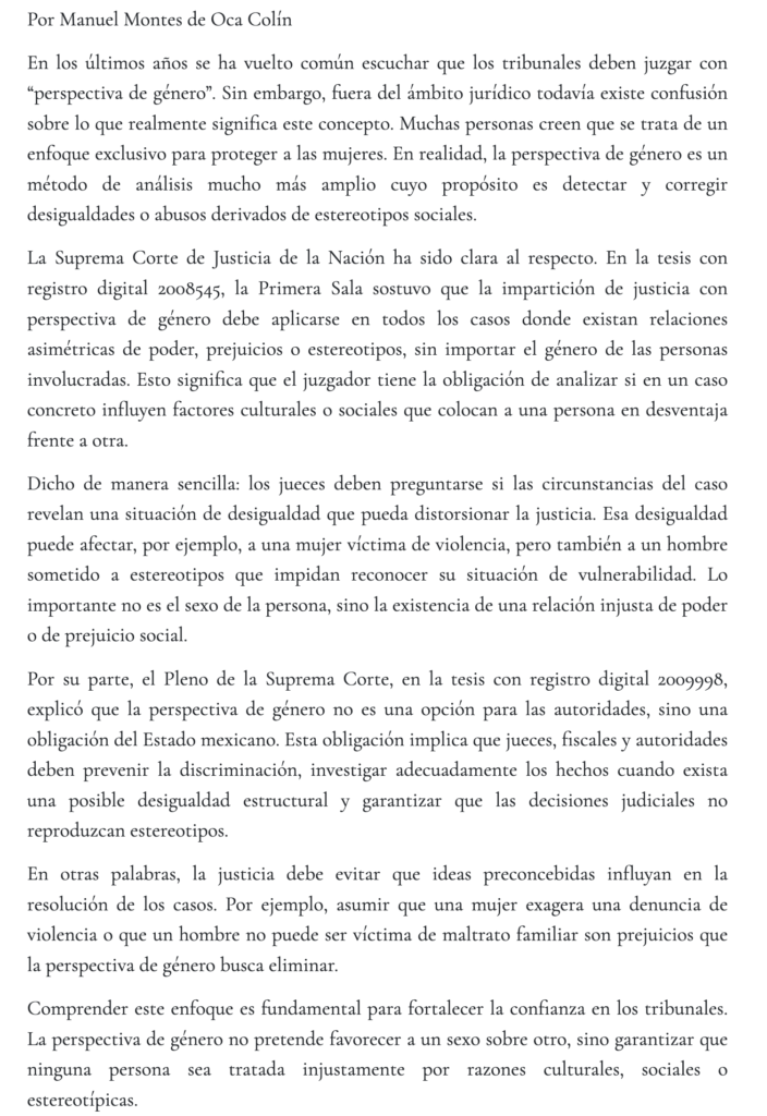 La perspectiva de género en los procesos judiciales: más allá de una etiqueta – Manuel Montes de Oca Colín