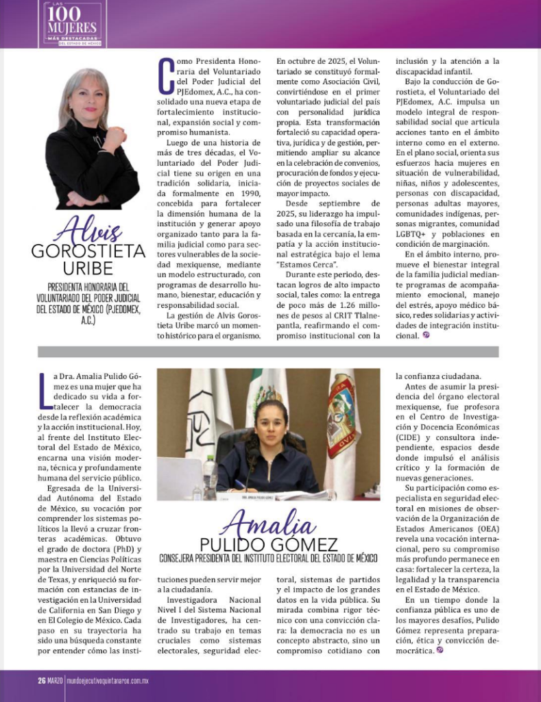 Las 100 mujeres más destacadas del Estado de México; Alvis Gorostieta Uribe