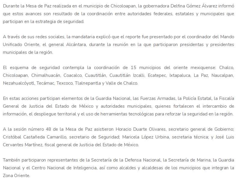 • https://ultranoticias.com.mx/seguridad-disminuyen-delitos-en-zona-oriente-del-edomex-con-estrategia-de-seguridad/