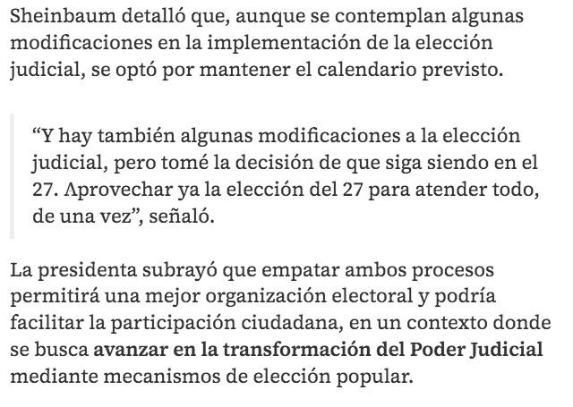 - https://www.milenio.com/politica/sheinbaum-anuncia-que-la-eleccion-judicial-se-realizara-en-2027
