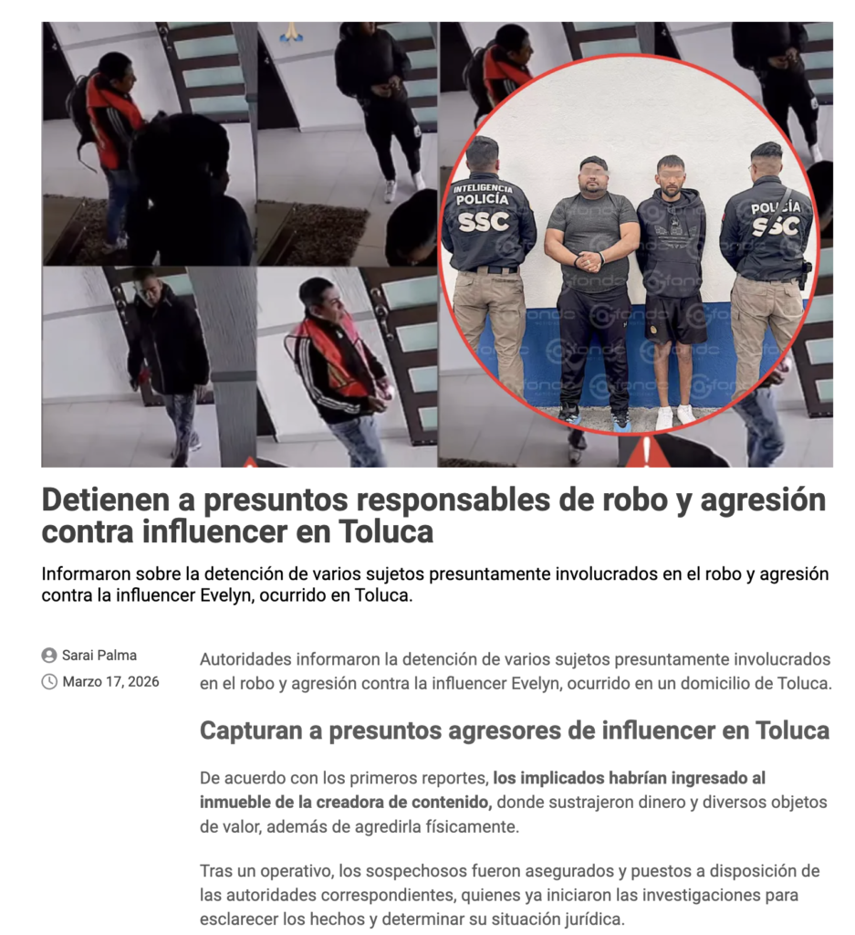 • https://lajornadaestadodemexico.com/detienen-a-presuntos-responsables-de-robo-y-agresion-contra-influencer-en-toluca/