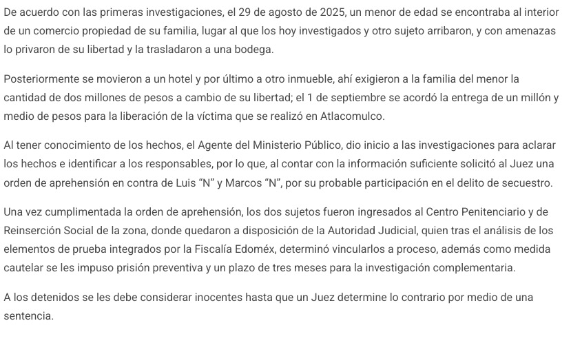 • https://reporterosenmovimiento.com/2026/03/18/vinculan-a-proceso-a-dos-sujetos-investigados-por-el-delito-de-secuestro-en-agravio-de-un-menor-de-edad-en-atlacomulco/