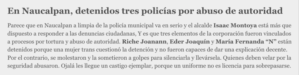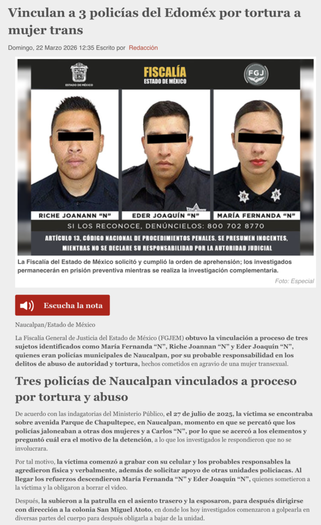 - https://digitalmex.mx/seguridad/story/65938/vinculan-3-policias-edomex-tortura-mujer-trans