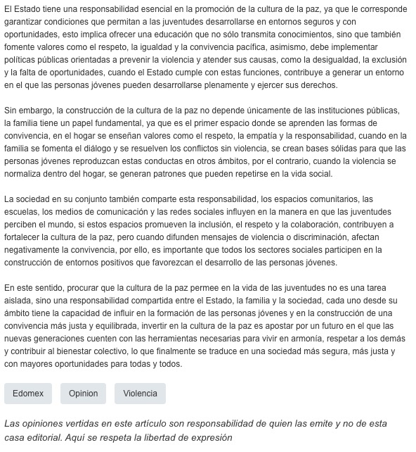 - https://oem.com.mx/elsoldetoluca/analisis/cultura-de-paz-como-eje-para-la-disminucion-de-la-violencia-y-la-recontruccion-del-tejido-social-29127995