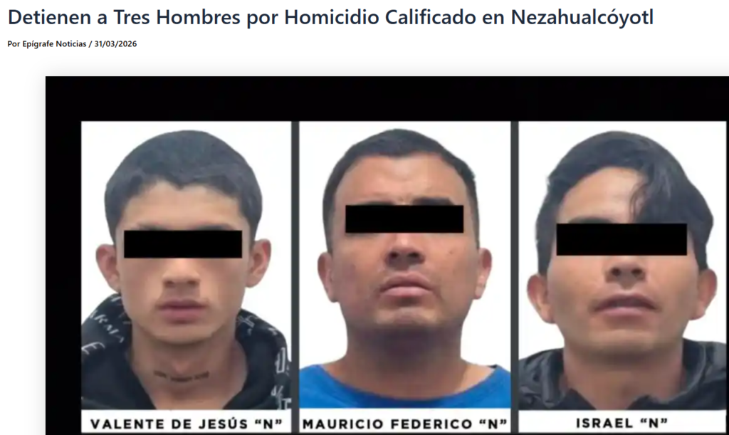 • https://epigrafenoticias.com/detienen-a-tres-hombres-por-homicidio-calificado-en-nezahualcoyotl/