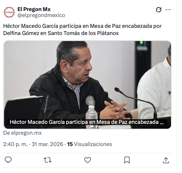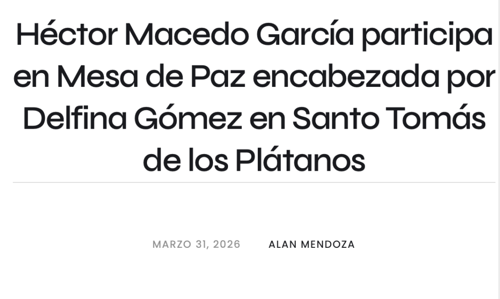 - https://www.elpregon.mx/uncategorized/hector-macedo-garcia-participa-en-mesa-de-paz-encabezada-por-delfina-gomez-en-santo-tomas-de-los-platanos/
