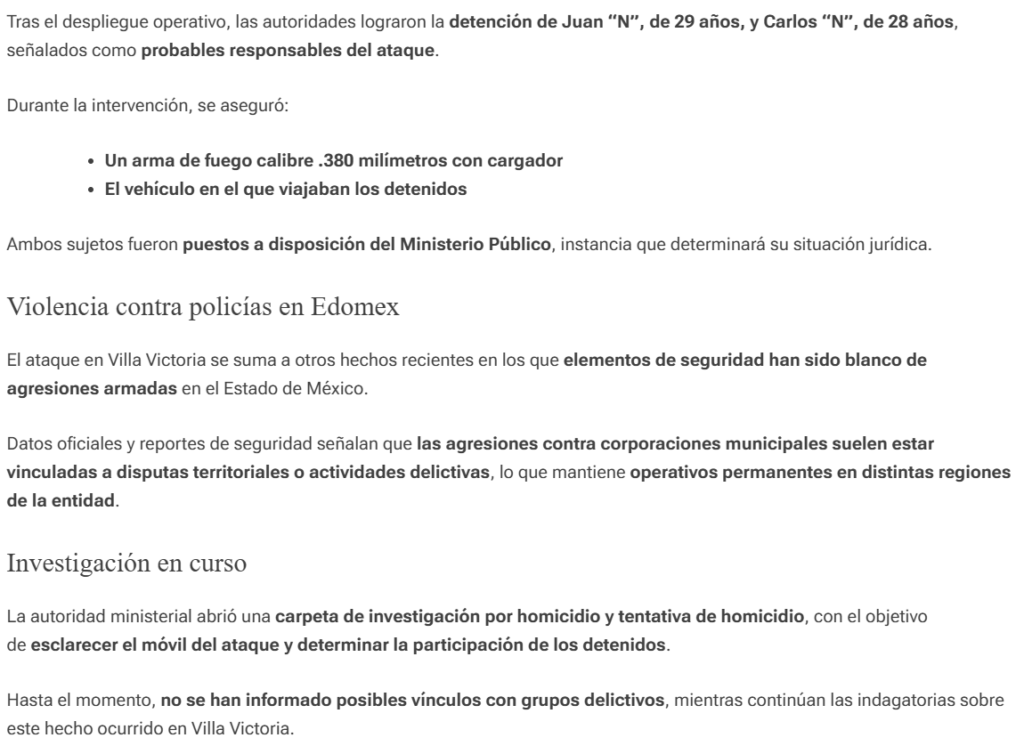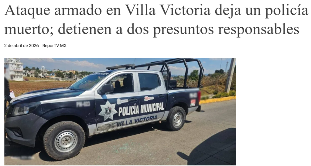 • https://reportv.com.mx/2026/04/02/ataque-armado-en-villa-victoria-deja-un-policia-muerto-detienen-a-dos-presuntos-responsables/